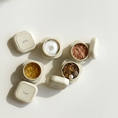 Designed for modern travel, the Magnetic Travel Cosmetic Box features magnetized modules that snap together to keep your essentials neatly arranged.